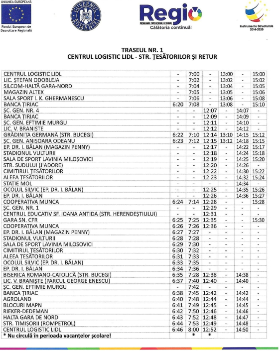 | * Nu circulă în perioada vacanțelor școlare! | * | * |