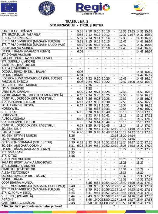 | * Nu circulă în perioada vacanțelor școlare! | * | * |