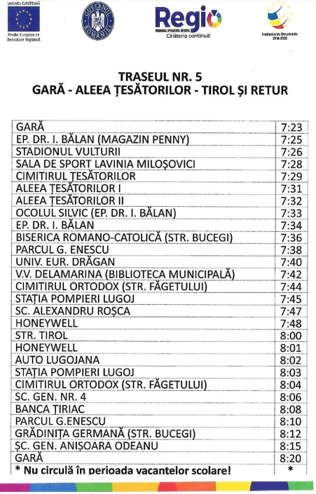 | Nu circulă în perioada vacanțelor școlare! | * |